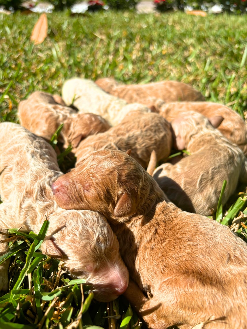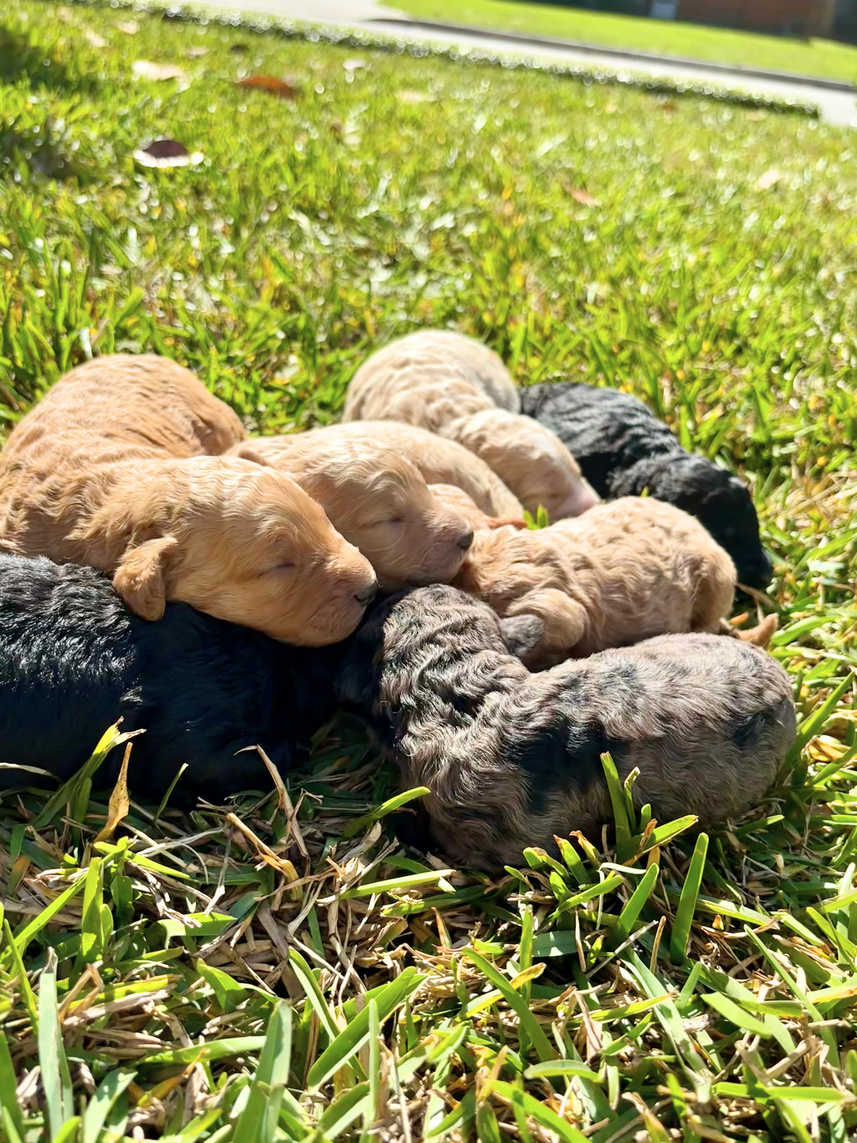 Our adorable Labradoodle and Double Doodle puppies ready for their forever homes and become the newest addition to your family. We're confident in their lineage, ensuring each pup is a healthy, loving companion brimming with personality.